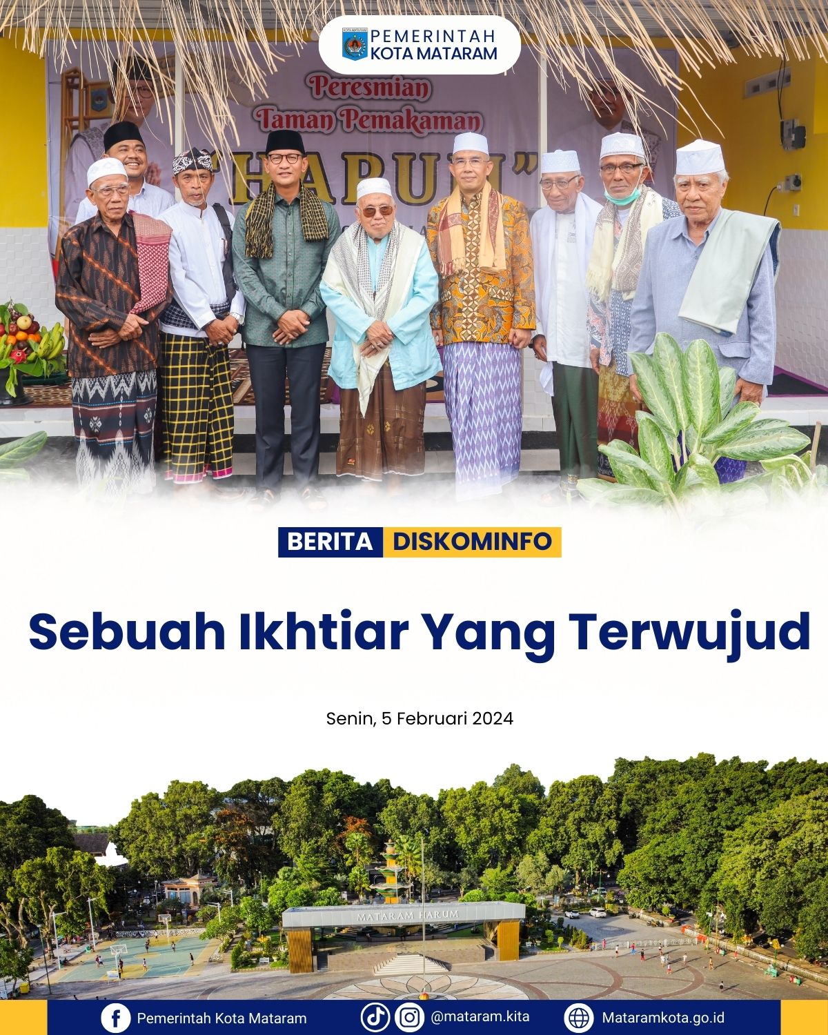 Mataram – Dalam mewujudkan visi dan misi Mataram Harum, dimana pelayanan kepada masyarakat harus maksimal, mulai dari kelahiran hingga kematian harus terlayani dengan baik, duet kepemimpinan Wali Kota Mataram, H Mohan Roliskana bersama dengan Wakil Wali Kota Mataram, TGH Mujiburrahman, terus berusaha merealisasikan komitmen tersebut, salah satunya adalah dengan menyediakan lahan tempat pemakaman umum. Hal ini ditegaskan, Wali Kota Mataram, H Mohan Roliskana, saat memberikan sambutan dalam kegiatan peresmian Taman Pemakaman Harum, Kelurahan Gomong, pada Senin (05/01/24), di areal pemakaman yang berada di lingkungan Gomong lama, Mataram.
