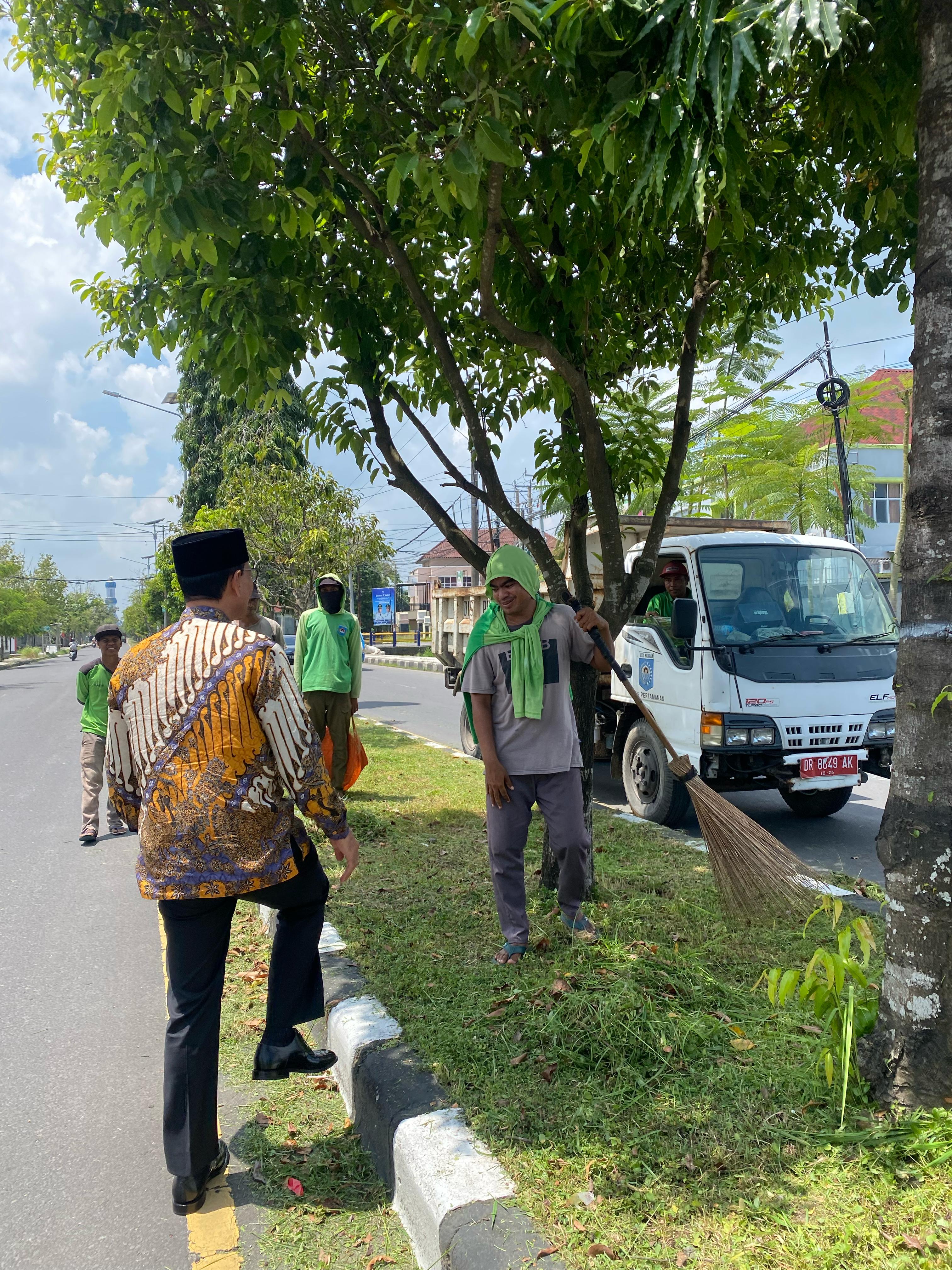 Beliau berbincang santai dan memberikan apresiasi atas dedikasi mereka yang menjaga keindahan kota. Sebagai bentuk terima kasih, Bapak Wali Kota secara spontan mentraktir makan siang para petugas yang sedang bertugas.