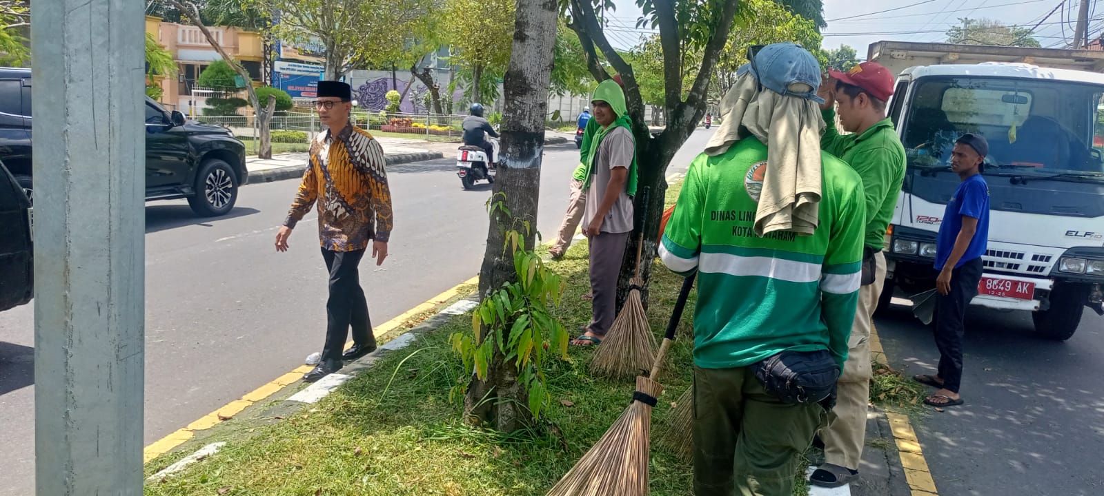 Usai menghadiri acara Halal Bihalal di Gedung DPRD Kota Mataram, Kamis (10/4/2025) Bapak Wali Kota Mataram H. Mohan Roliskana menyempatkan diri turun dari mobil dan menyapa para petugas pemelihara taman dari Dinas Lingkungan Hidup yang sedang bekerja.