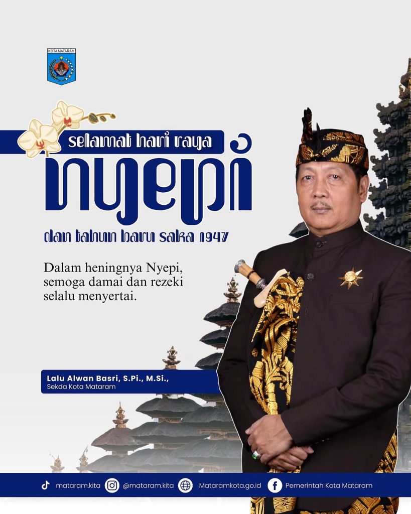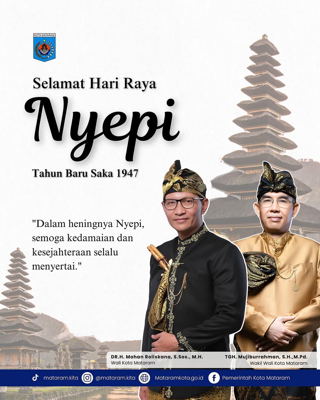 Selamat Hari Raya Nyepi Tahun Baru Saka 1947! Semoga perayaan Nyepi tahun ini membawa kedamaian, kebahagiaan, dan keharmonisan bagi seluruh warga Kota Mataram, khususnya umat Hindu. Mari kita wujudkan Mataram yang semakin sejahtera, dengan semangat refleksi dan introspeksi diri.