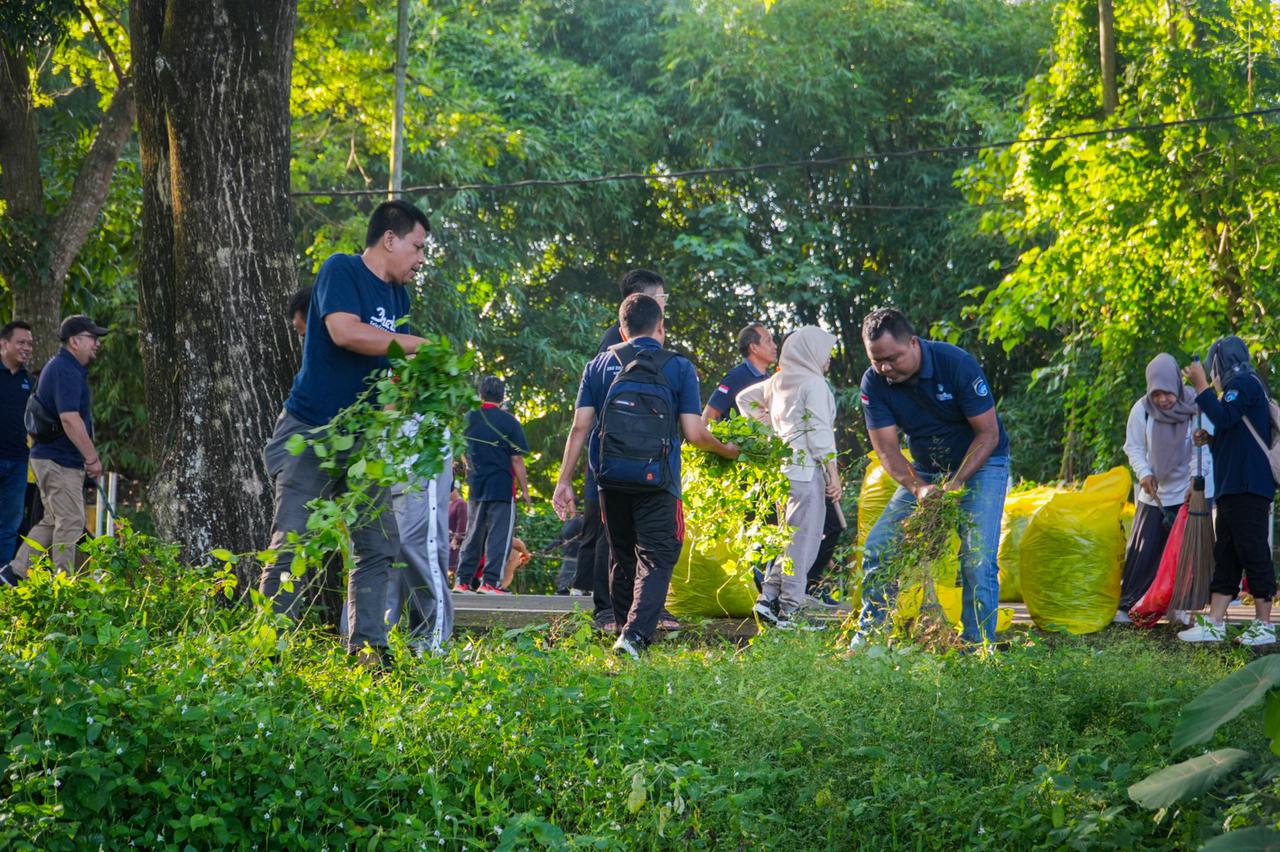 Kegiatan gotong royong tersebut dipusatkan di Ruang Terbuka Hijau (RTH) Pagutan pada Jumat (10/04/2026), dengan melibatkan seluruh Oragnisasi Perangkat Daerah (OPD). Aksi ini tidak hanya difokuskan pada pembersihan lingkungan, tetapi juga penataan kawasan, perawatan fasilitas umum, sebagai wujud kepedulian terhadap ruang publik.