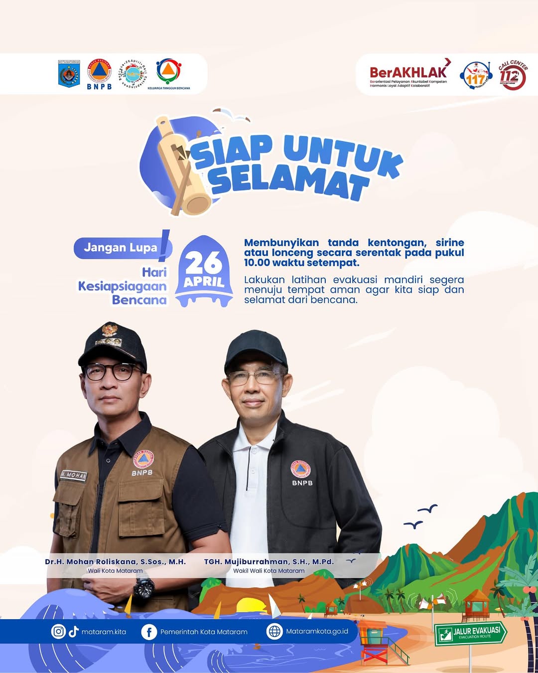 Jangan lupa tanggal 26 April Hari kesiap Siagaan Bencana Bunyikan kentongan, sirine atau lonceng secara serentak pada pukul 10.00 waktu setempat
