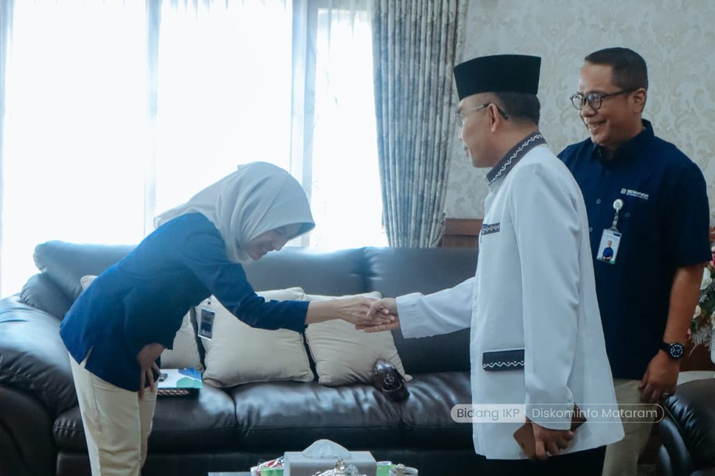 Wakil Wali Kota Mataram, TGH Mujiburrahman, menerima kunjungan Kepala Badan Penyelenggara Jaminan Sosial (BPJS) Kesehatan Cabang Mataram, Agung Utama Muchlis, di Pendopo Margapati, pada Kamis (21/08/2025).