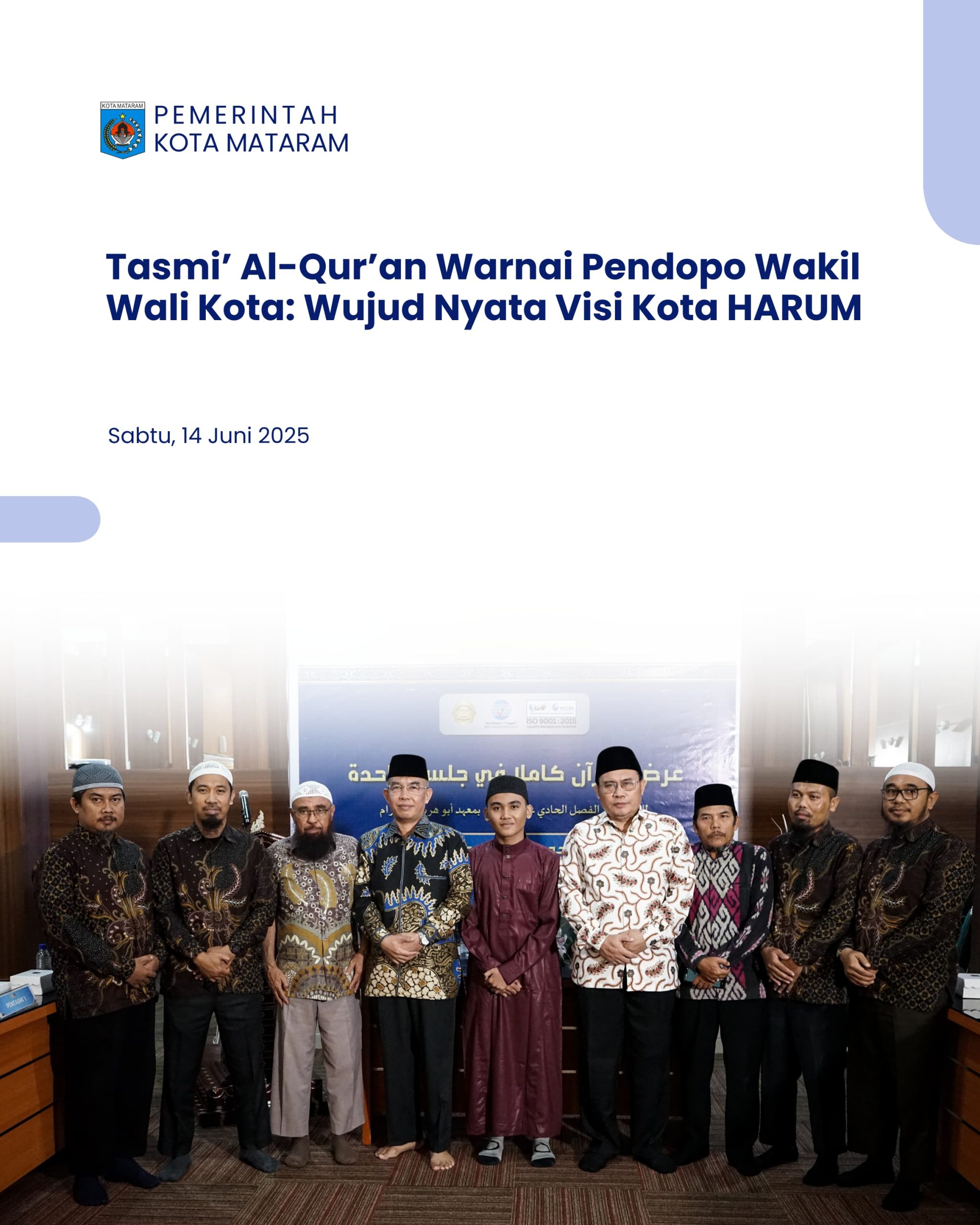 Kegiatan Tasmi’ Al-Qur’an di Pendopo Margapati ini sekaligus menegaskan bahwa nilai-nilai spiritual, edukatif, dan kebersamaan terus tumbuh dan mendapatkan ruang dalam tata kelola pemerintahan Kota Mataram yang inklusif, ramah, dan berorientasi pada pembangunan karakter masyarakat. * (TK-Diskominfo)