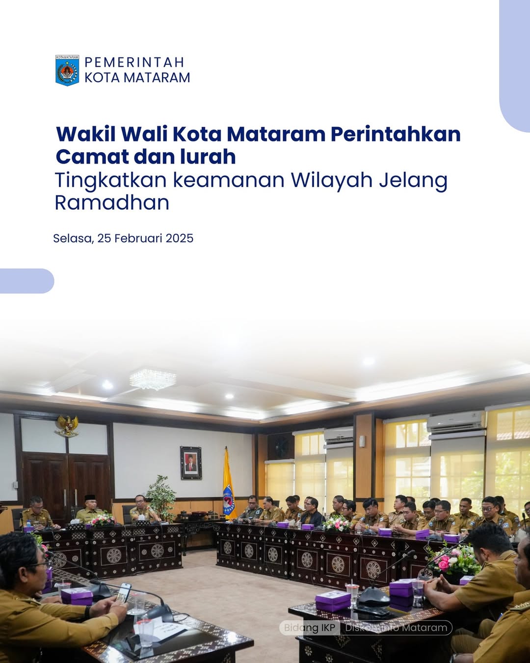 Wakil Wali Kota Mataram Perintahkan Camat dan Lurah, Tingkatkan Keamanan Wilayah Jelang Ramadhan