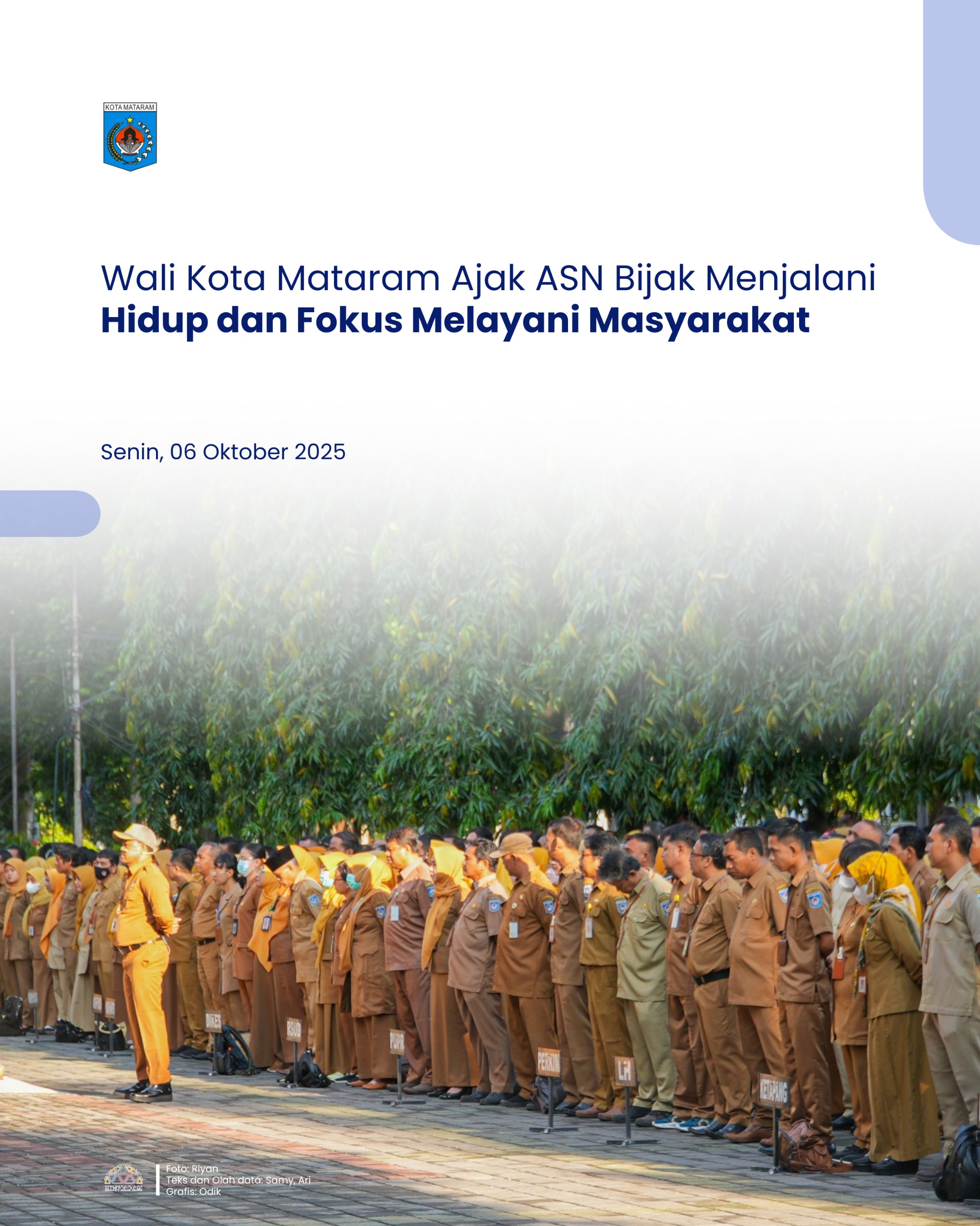 Mataram — Wali Kota Mataram, H. Mohan Roliskana, mengajak seluruh Aparatur Sipil Negara (ASN) di lingkungan Pemerintah Kota Mataram untuk hidup dengan bijak, tidak larut dalam gaya hidup konsumtif, serta menempatkan pelayanan kepada masyarakat sebagai prioritas utama dalam menjalankan tugas. Pesan tersebut disampaikan saat memimpin apel pagi di Halaman Kantor Wali Kota Mataram, Senin (06/10/2025).