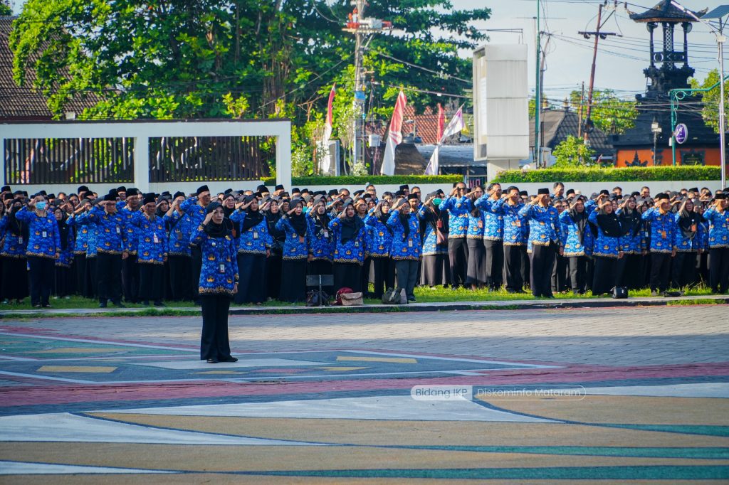 “Upacara yang kita laksanakan setiap tanggal 17 adalah momen bagi kita untuk berhenti sejenak, menengok ke dalam diri, dan mengukur kembali sejauh mana komitmen sebagai ASN telah diwujudkan dalam tugas sehari-hari,” tegas Wali Kota mengawali amanatnya.