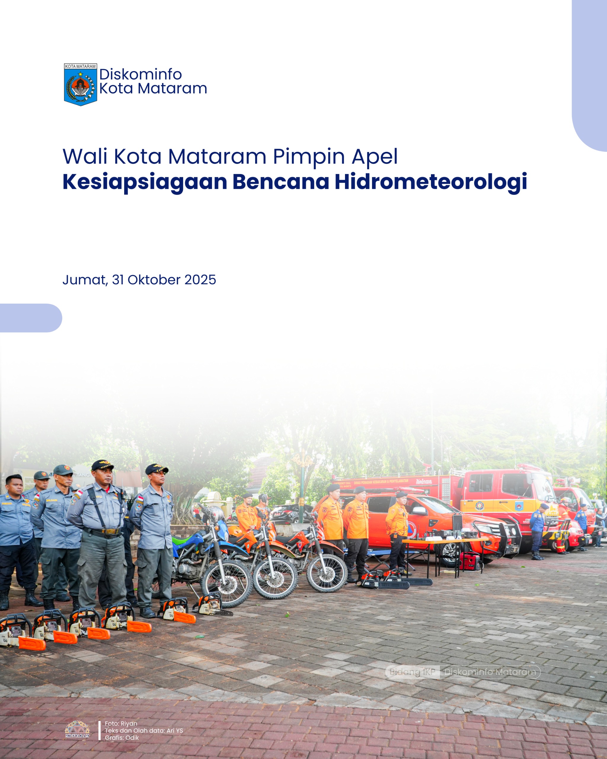 Mataram — Menyikapi meningkatnya curah hujan di wilayah Provinsi Nusa Tenggara Barat (NTB), khususnya di Kota Mataram, Pemerintah Kota Mataram bersama jajaran Forkopimda dan seluruh pemangku kepentingan menggelar Apel Kesiapsiagaan Bencana Hidrometeorologi, Jumat (31/10/2025), di Lapangan Sangkareang Kota Mataram.