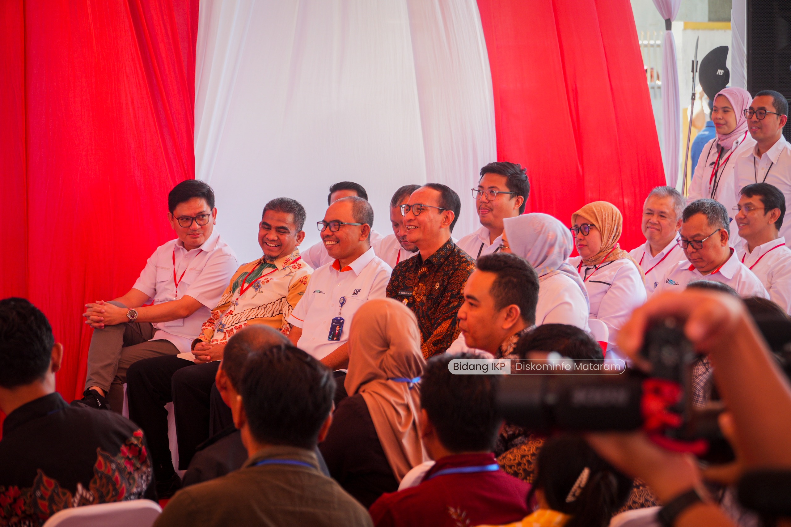 Putri, Wali Kota Mataram H. Mohan Roliskana, Kepala PT Pos Indonesia, serta perwakilan pekerja penerima manfaat.