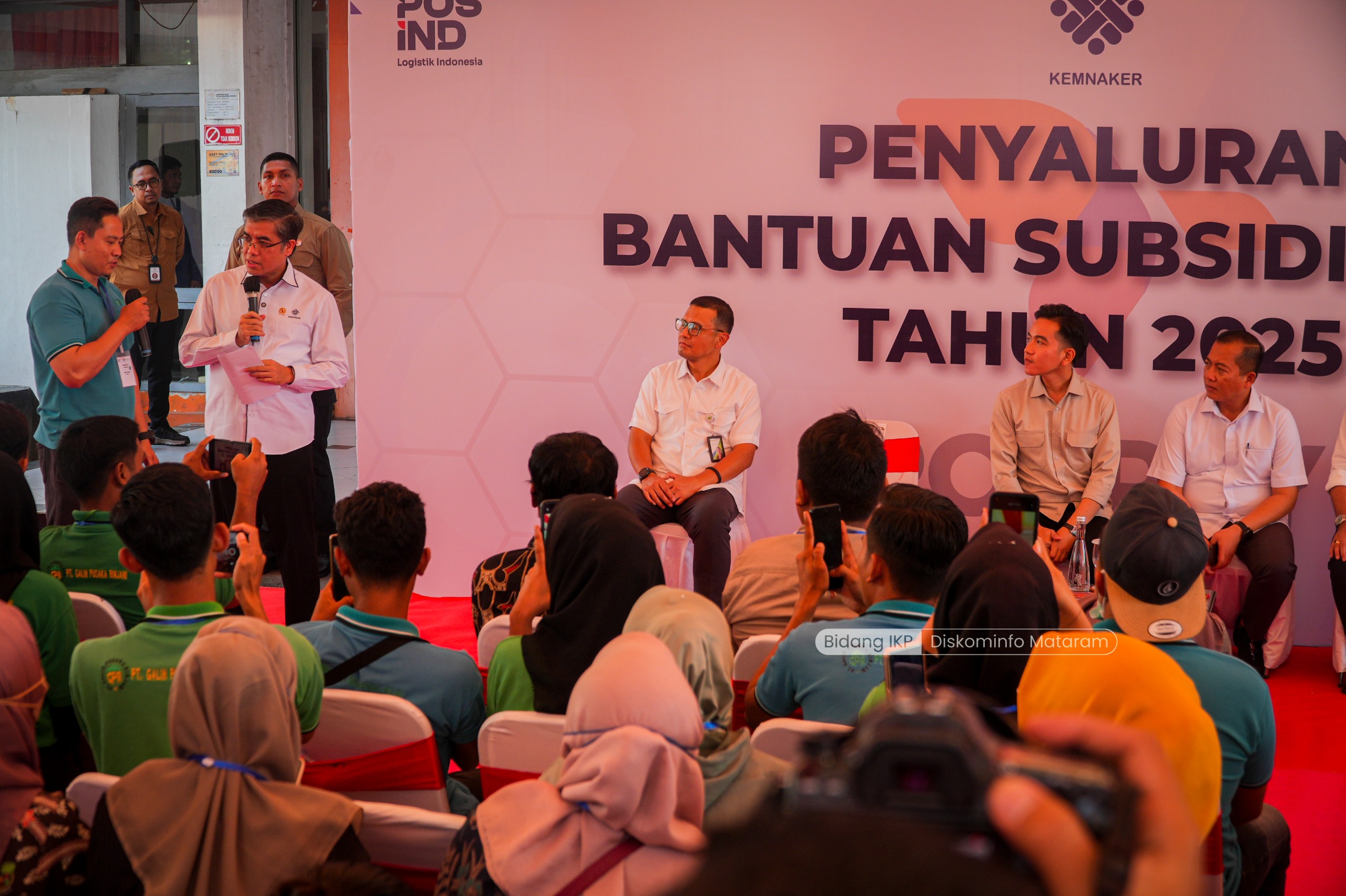 Kegiatan penyerahan bantuan turut dihadiri oleh Menteri Ketenagakerjaan RI Yassierli, Gubernur NTB Lalu M. Iqbal, Wakil Gubernur NTB Hj. Indah Damayanti Putri, Wali Kota Mataram H. Mohan Roliskana, Kepala PT Pos Indonesia, serta perwakilan pekerja penerima manfaat.