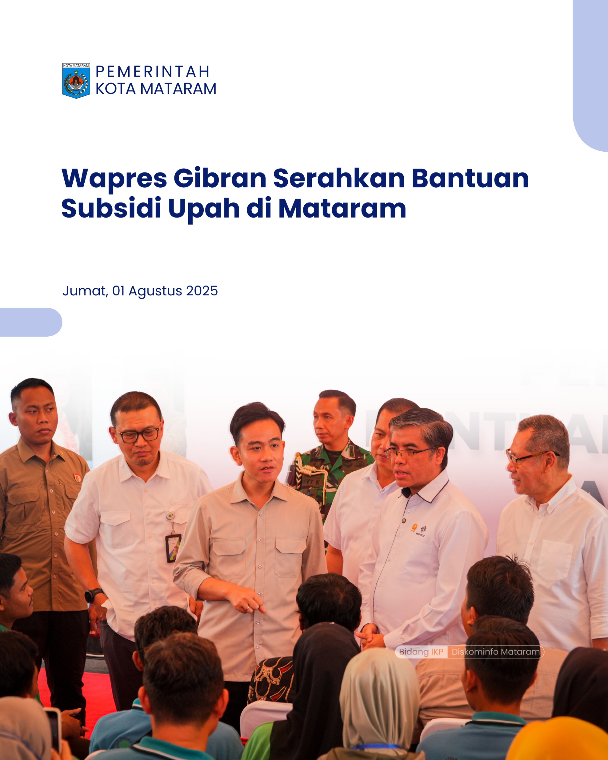 Mataram, — Wakil Presiden Republik Indonesia, Gibran Rakabuming Raka, menyerahkan secara simbolis Bantuan Subsidi Upah (BSU) kepada para pekerja penerima manfaat di Kantor Pos Mataram, Jumat (1/8). Penyerahan ini merupakan bagian dari komitmen pemerintah pusat dalam menjaga daya beli masyarakat sekaligus memperkuat perlindungan sosial di tengah dinamika ekonomi global.