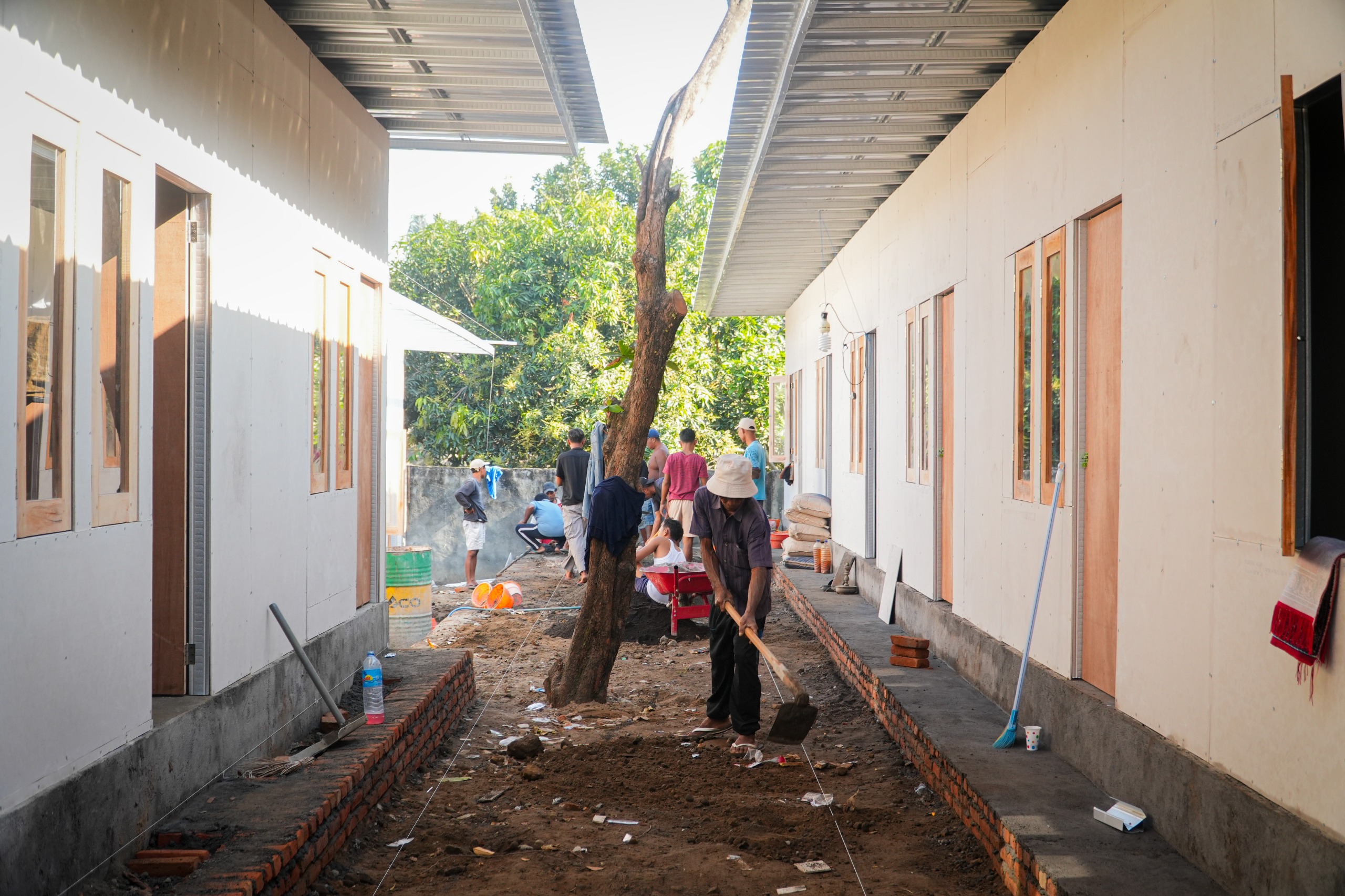 Di Lingkungan Pomotan, sebanyak 14 unit Huntara disiapkan untuk 14 kepala keluarga dengan total 50 jiwa, dan diperkirakan rampung dalam beberapa hari ke depan. Selain itu, sisa lahan di area tersebut akan dimanfaatkan untuk membangun ruang pertemuan warga dan mushola sebagai sarana ibadah, guna mendukung kehidupan sosial dan spiritual masyarakat.